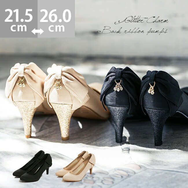 楽天市場 クーポン利用で6408円 本日18時 24時まで パンプス 痛くない ブラック 結婚式 黒 シューズ レディース 靴 大きいサイズ パーティー パーティーシューズ 柔らか 歩きやすい ハイヒール ラウンドトゥ リボン ラメ ベージュ オフィス 謝恩会 卒園式 二次会