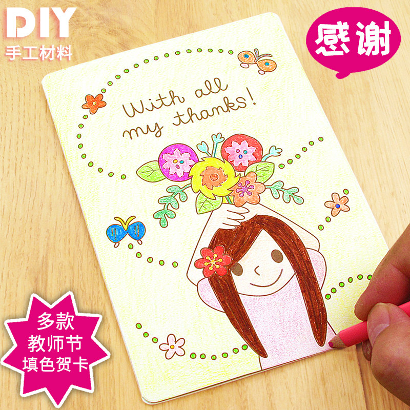 Diy Teacher S Day Toddler Fills Greeting Card Handmade Material Pack Thank You Card Creative Homemade Blessing Gift