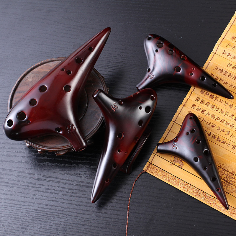 12孔陶笛四件套薰燒裂紋款含ac Sf Sg Sc調十二孔專業演奏級樂器