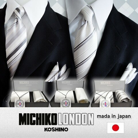 結婚式 ネクタイ シルバー特別ご奉仕 Michiko London ポケットチーフ ネクタイset Box M Cpn Set 贈り物としても喜ばれております 卸だからできる価格 箱付 ネクタイ 結婚式 披露宴 フォーマル ブランド シルク 日本製 プレゼント シルバーグレー Formal Necktie